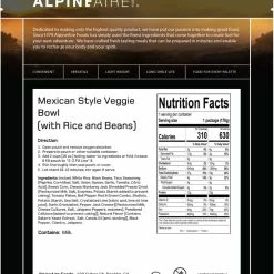 AlpineAire Foods Mexican-Style Veggie Bowl – 1 Serving – None